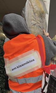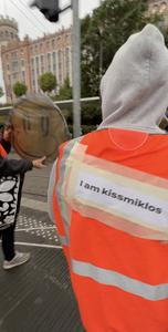The Strategy of Invisibility & Identity: The installation was executed by a coordinated team of street artists under my direction. To blur the lines of authorship, each collaborator wore a high-visibility vest with a sign on their back stating: "I am kissmiklos." This performative element served a dual purpose: it acted as a "perfect camouflage," making the intervention appear as official city maintenance, while simultaneously challenging the traditional concept of the artist as a single, identifiable individual. By multiplying my identity, I made the "artist" as ubiquitous and anonymous as the emograms themselves.