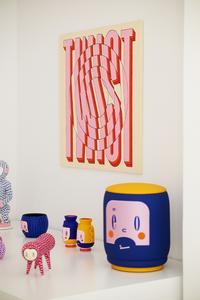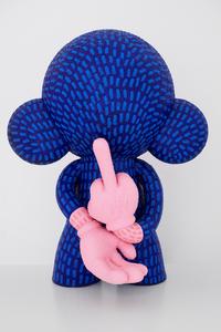 acrilyc on FRP, 80 x 60 x 40 cm, 2024 - 2025 Many of us know the feeling when, due to our vulnerable position, we are forced to apologize. It’s when we have to humble ourselves before someone and repeat, SORRY, SORRY, while in reality, we would rather use obscene words against that person. Due to the pressure to conform to external expectations, we cannot share our true feelings face-to-face, leaving the only options as suppression or a secretly held, angry reaction. This familiar feeling is perhaps even more powerful when represented by a cute, seemingly harmless figure that suggests humiliation.ENJOY