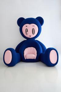 XPS, OSB, plywood, cotton wool, wool felt, leather, 300 x 290 x 260 cm, 2023-2024 This is a giant teddy bear with the inscription “ENJOY” on its face and an armchair inside its belly. The artwork is both a functional object and a sculpture, creating childhood nostalgia and an intimate space. The “ENJOY” inscription on its face serves as both a simple invitation to rest and relax and, due to its size and context, has a subtle ironic undertone.DECOR (TABLE)