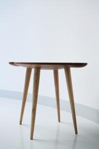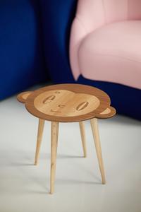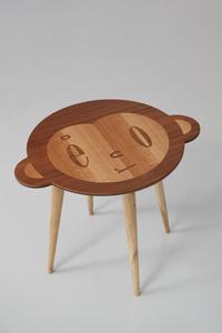 MDF, walnut wood, 40 x 50 x 40 cm, 2025 A simple small table. The monkey face on the tabletop is formed by the letters of the word DECOR, because this is just a ‘decoration’ piece.DECOR (OTTOMAN)