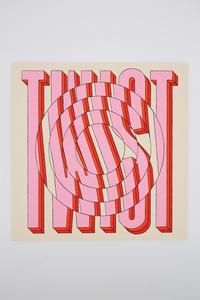 acrylic on PLA, 20 x 10 x 30 cm, 2025 This small, heavily painted sculpture depicts a four-legged creature with a dual identity: faces are formed by the words ‘ARTY’ on one side and ‘FARTY’ on the other. This figure, with its expressive, thick paintwork, is fundamentally an artwork, yet its simple form and inherently decorative appearance allow it to be easily interpreted as a mere shelf ornament or design object. The title and the dual faces are a clear mockery of this duality: while ‘ARTY’ suggests artistic sophistication, ‘FARTY’ (a colloquialism for flatulence) grounds the piece in the vulgar and highlights the intended ‘ass-end’ of the figure.TWIST